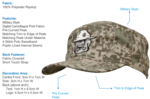 This popular military style cap is made of 100% polyester ripstop material. This soft yet durable and colorfast cap will stay looking new and stylish for years to come. Embroidery area is a max of 1.5" high x 4.5" wide.