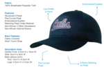 100% polyester material keeps you cool and dry and does not fade like 100% cotton. 6 panel construction perfect for your logo. Other color options available upon request.